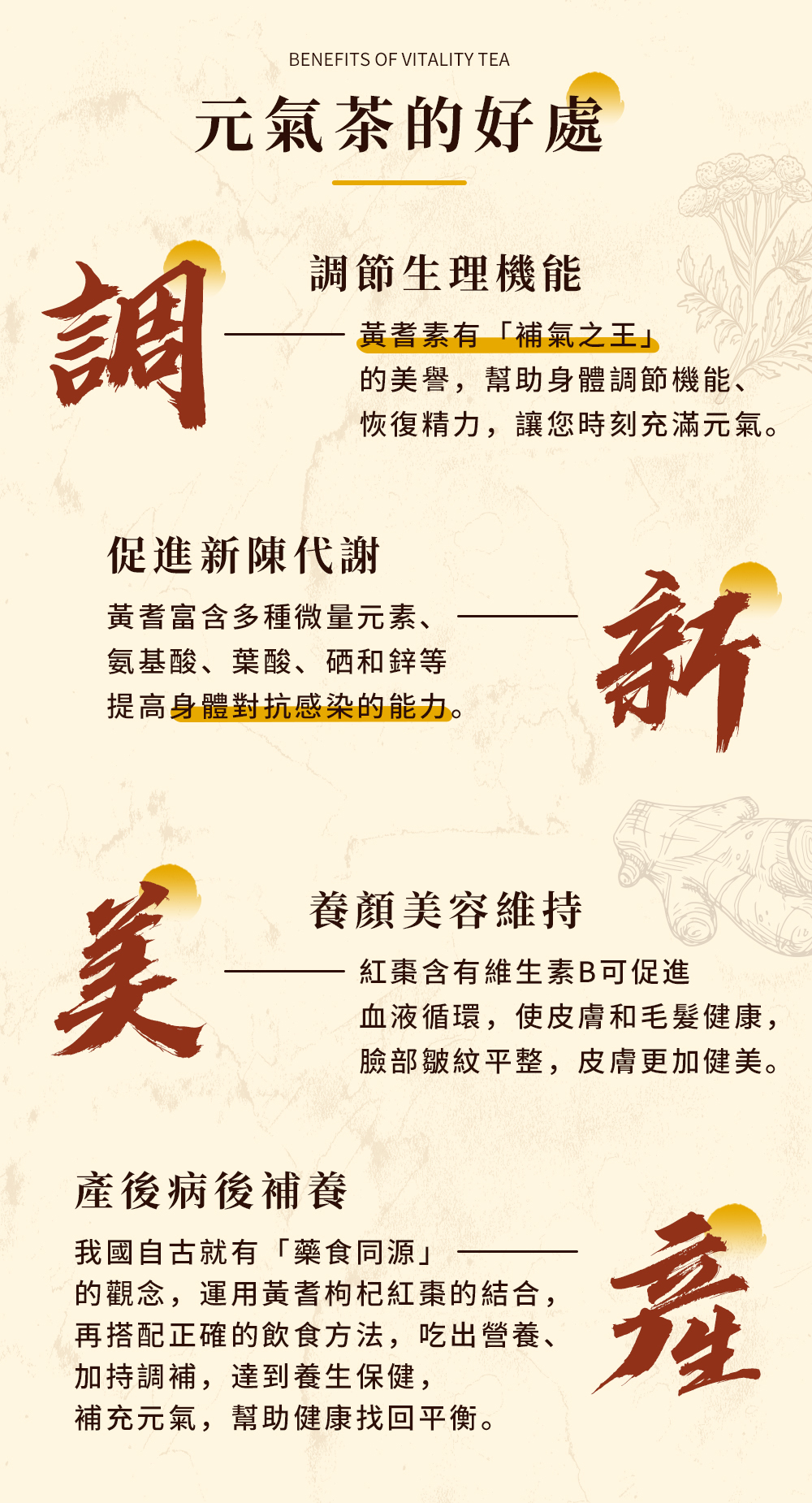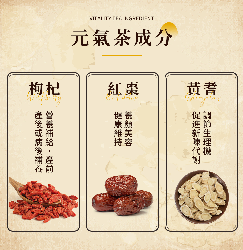 嚴選配方黃耆、紅棗、枸杞黃金比例組成